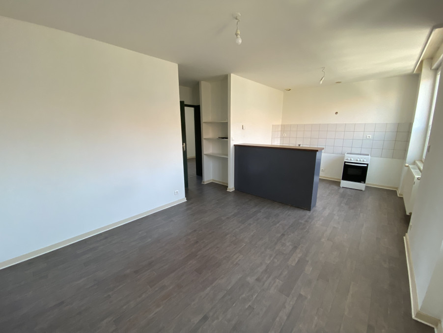 Au deuxième et dernier étage d'un immeuble, appartement de type T2 comprenant une pièce à vivre avec coin cuisine, une chambre, une salle de bains/WC.