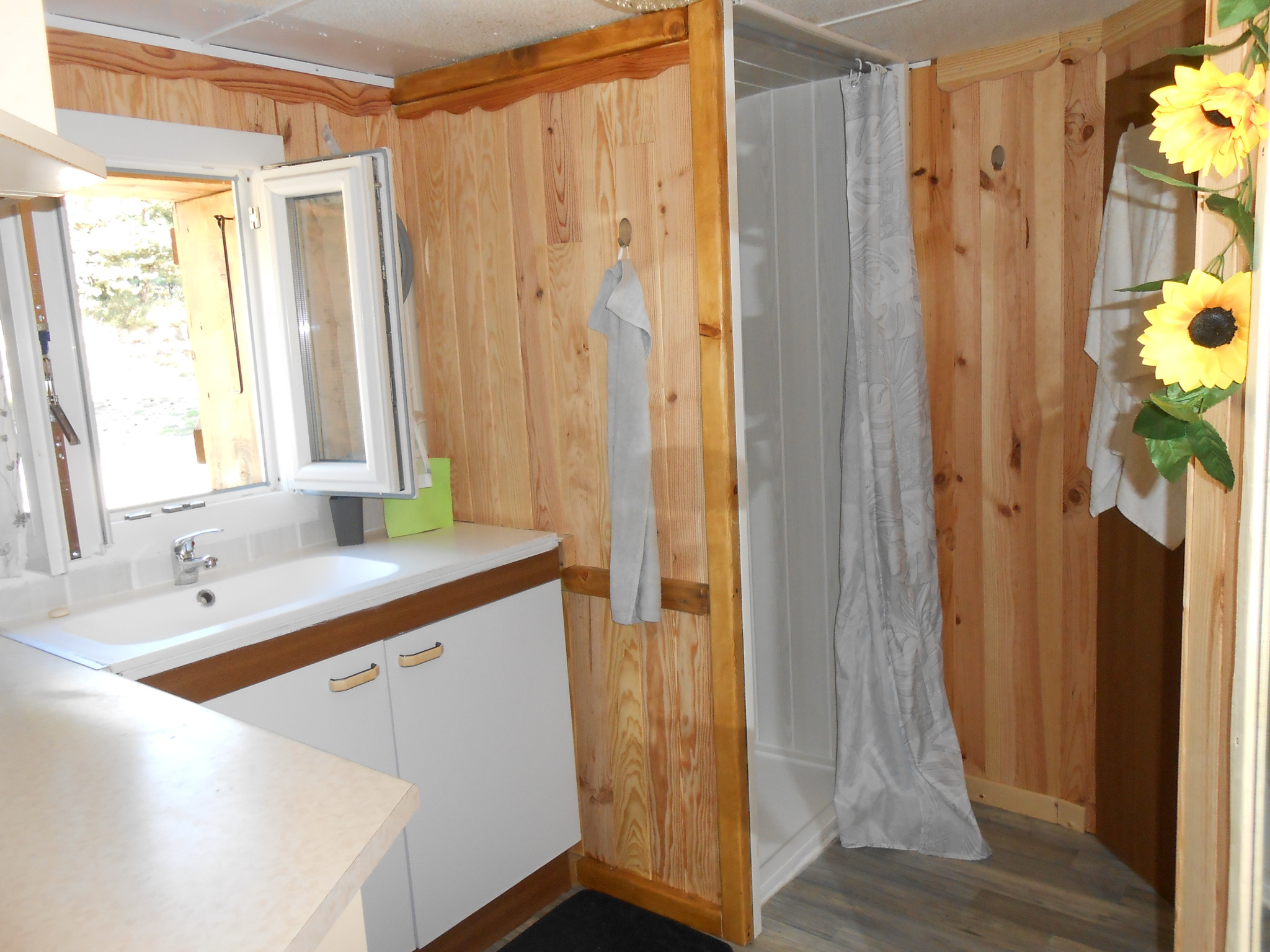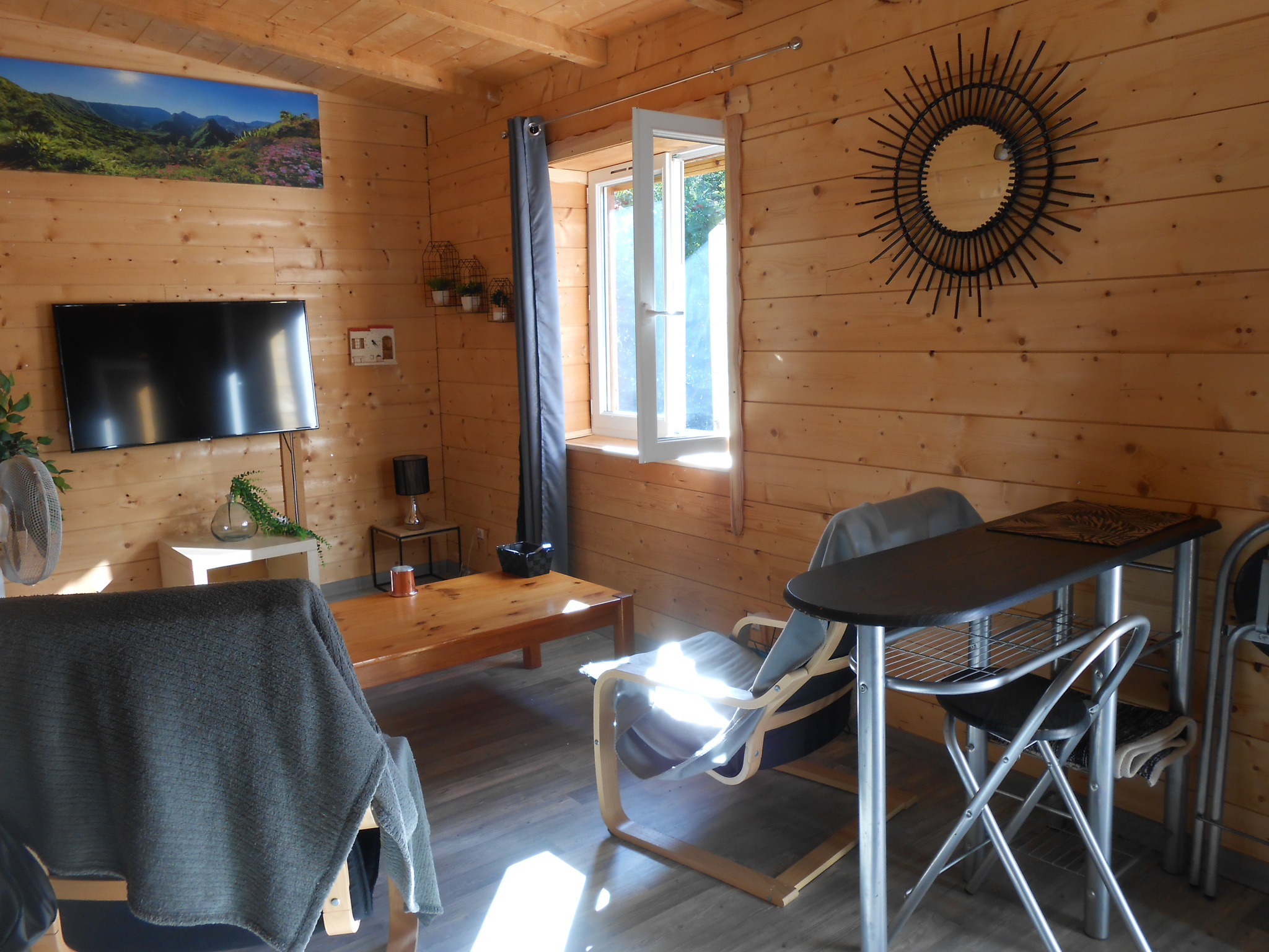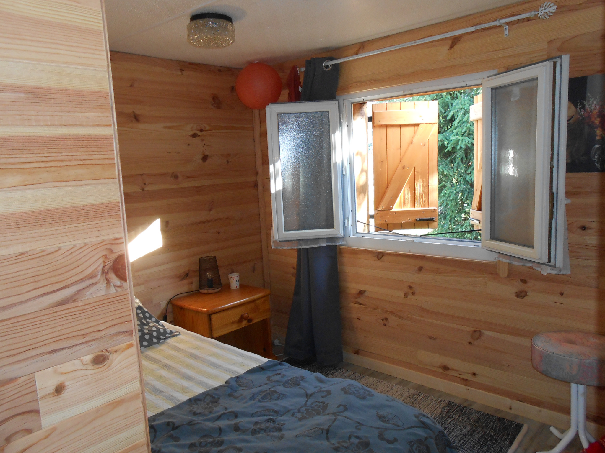 Situé à environ 5 mn de Langogne, dans un Parc Résidentiel de Loisirs, avec de nombreuses activités (repas à thème, animations, aire de jeux pour enfants, bar...) chalet pouvant accueillir 3 personnes. Il comprend une belle pièce de vie avec cuisine (plaque gaz, réfrigérateur congélateur, micro onde, mini four, cafetière...) donnant sur une terrasse avec vue dégagée, une chambre avec un lit en 160, une chambre avec un lit en 90, une salle d'eau avec cabine de douche et un WC. Environnement très calme, activités à proximité (lac de Naussac, nombreuses randonnées...).