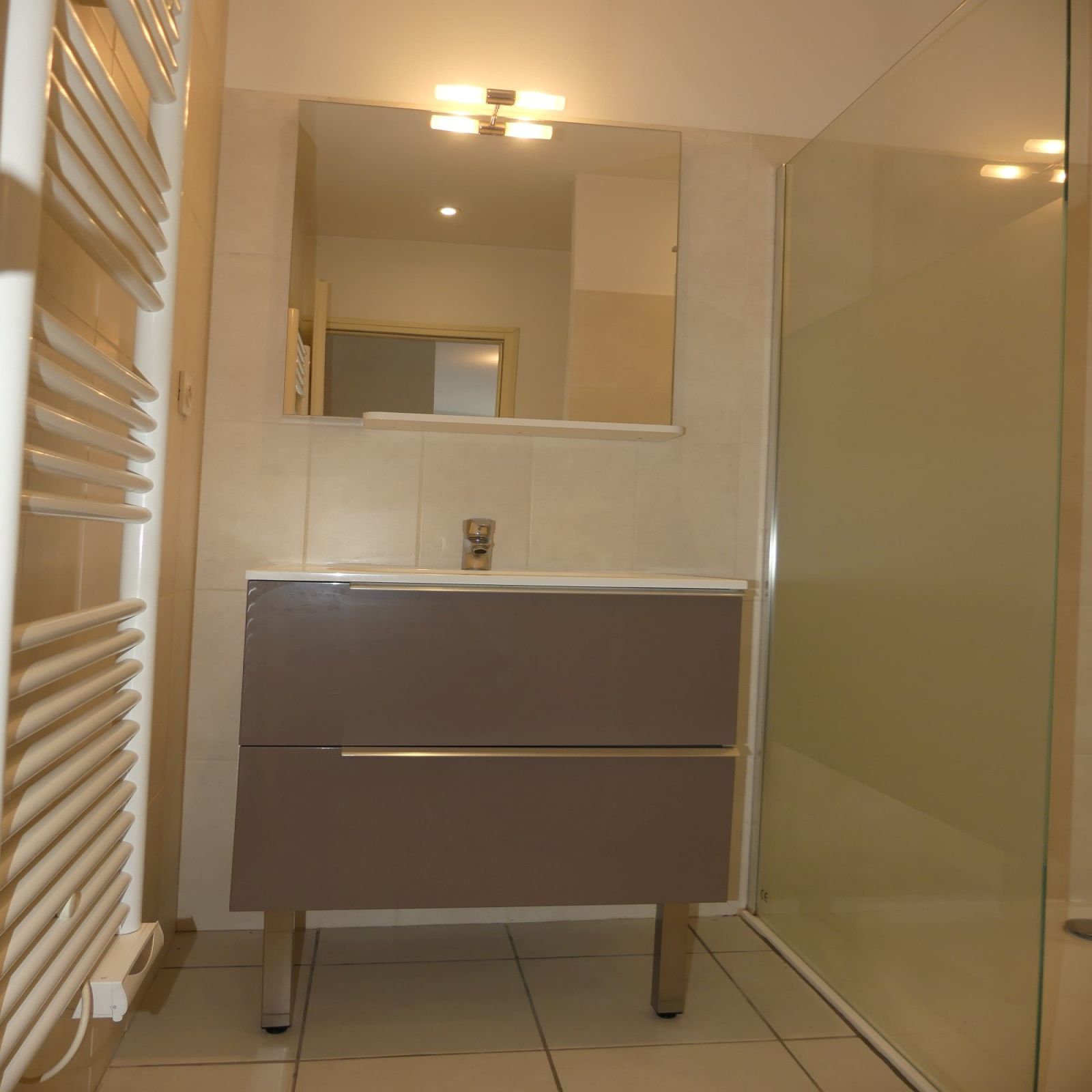 Au 1° étage d'un immeuble comprenant 4 lots, appartement comprenant séjour/cuisine, chambre, salle d'eau avec coin WC, petit balcon. Très lumineux, cet appartement rénové offre tous les éléments de confort (cuisine équipée avec plaque vitro, four électrique, hotte, réfrigérateur congélateur, salle d'eau avec douche italienne, une vasque sur meuble, WC suspendu) - Chauffage électrique - Fenêtres et baie vitrée PVC double vitrage - Volets roulants électriques - Un emplacement de parking dans un garage commun.