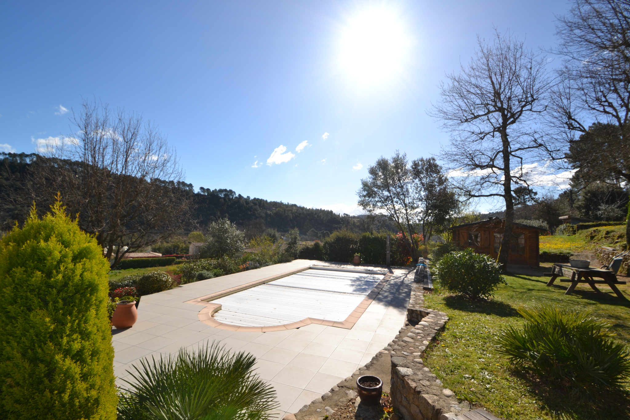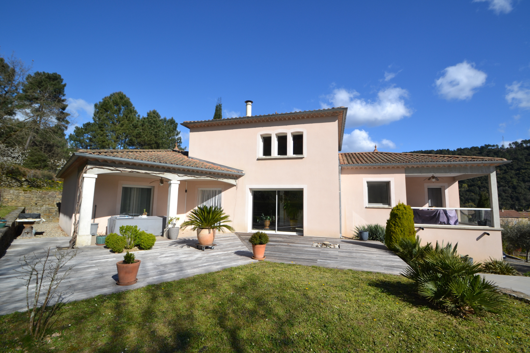Villa contemporaine de plain-pied de 171 m² avec piscine, située dans un hameau calme à proximité des gorges du Chassezac et à deux pas des commodités. Cette maison offre de beaux volumes. À l’intérieur, vous trouverez une grande pièce de vie lumineuse avec un salon cathédrale, ainsi qu’une cuisine semi-ouverte, agrémentée d’un foyer à bois suspendu apportant beaucoup de charme. Elle dispose également de deux chambres de plain-pied, d’une salle de bains et de deux toilettes avec lavabo, ainsi que d’une belle suite parentale avec sa salle d’eau. Chaque chambre bénéficie de sa propre terrasse. À l’étage, une mezzanine surplombe la pièce de vie et offre de nombreuses possibilités d’aménagement (bureau, télétravail, espace jeux…). Vous trouverez également deux garages. À l’extérieur, la propriété s’étend sur un terrain de plus de 2 800 m², dont une partie constructible. Une grande terrasse exposée plein sud, une piscine chauffée permettant d’en profiter une grande partie de l’année, ainsi qu’un espace extérieur soigné avec terrain de pétanque viennent compléter l’ensemble. Un bien agréable à vivre, idéal pour profiter de moments en famille ou entre amis.